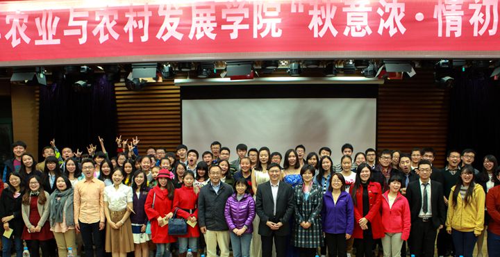 2014年10月30日,我院2014年迎新晚会在学生活动中心东厅成功举办,2014级的全体新生参加了晚会,院长唐忠教授,院党委书记兼副院长孔祥智教授,院党委副书记唐传英副教授,教师代表庞晓鹏教授、2014级新生班主任仇焕广老师、朱乾宇老师、张清勇老师、陈乙瑶老师,院团委书记高佳老师,培训中心孙永鸽老师应邀出席。