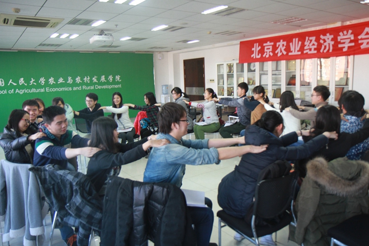 对比过后,朋辈心理辅导员带领同学们进行了放松游戏。每个人分别转向左、右两边,为旁边的同学进行肢体上的放松。游戏使得现场气氛更加欢乐。
