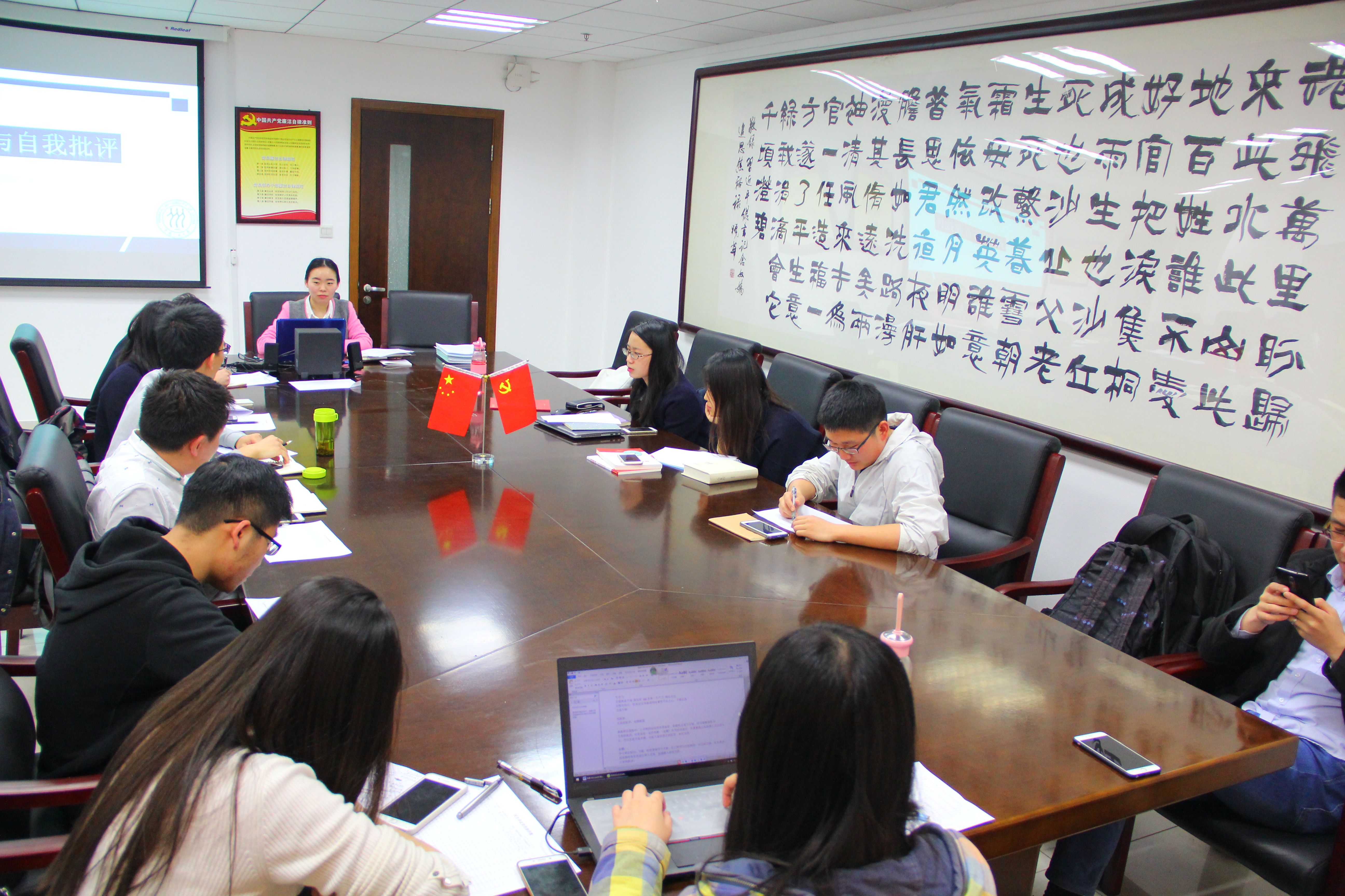 2017-03-213月18日,喜漫漫画 2016级硕士4班党支部在明德主楼“党员之家”召开组织生活会,进行理论学习成果检验与民主评议党员。