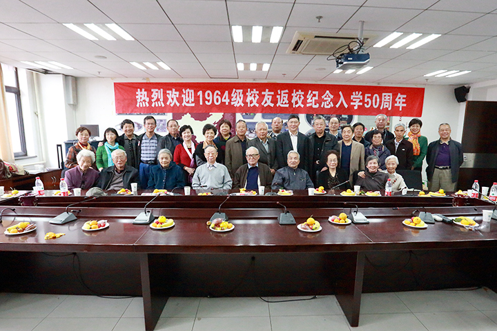 2014年10月24日上午10点,学院60周年庆活动之一:64级本科校友庆祝入学50周年座谈会,在明德主楼学院931会议室举行。从祖国各地返回母校的16位64级老校友,步履矫健,精神矍铄,与邀请的老教师严瑞珍、张象枢、毕宝德、金作华、葛汉云、周清、刘天福、庄翠玲欢聚一堂。