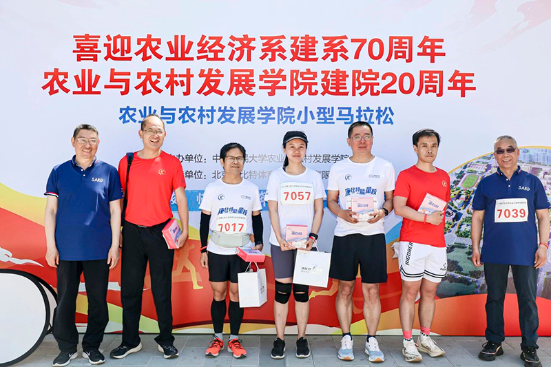 跑步结束后,唐忠、孔祥智、曾丙健为参赛选手们颁发了奖品,赞扬了参赛选手们坚忍不拔的毅力和勇往直前的精神。