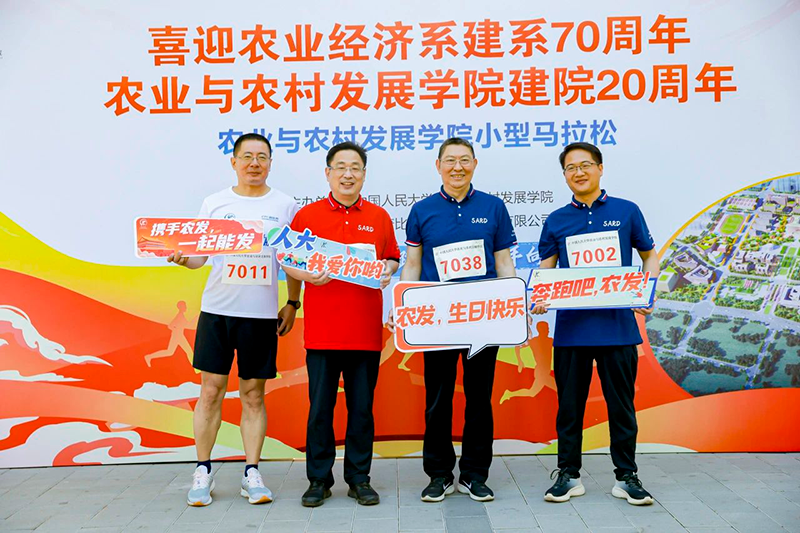 小型马拉松赛在通州大运河森林公园火热举行。近百名师生校友以跑步的形式为农业经济系70岁生日、喜漫漫画