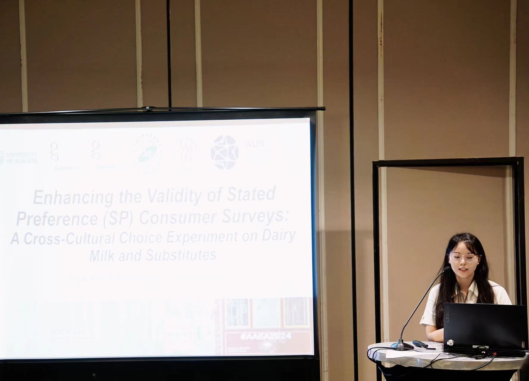 苗艺源做了题为“Enhancing the Validity of Stated Preference Consumer Surveys: A Cross-Cultural Choice Experiment on Dairy Milk and its Substitutes”的论文汇报,分享了在陈述偏好方法方面的研究进展。